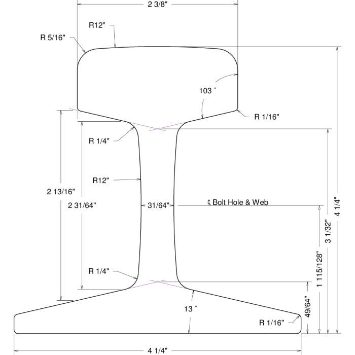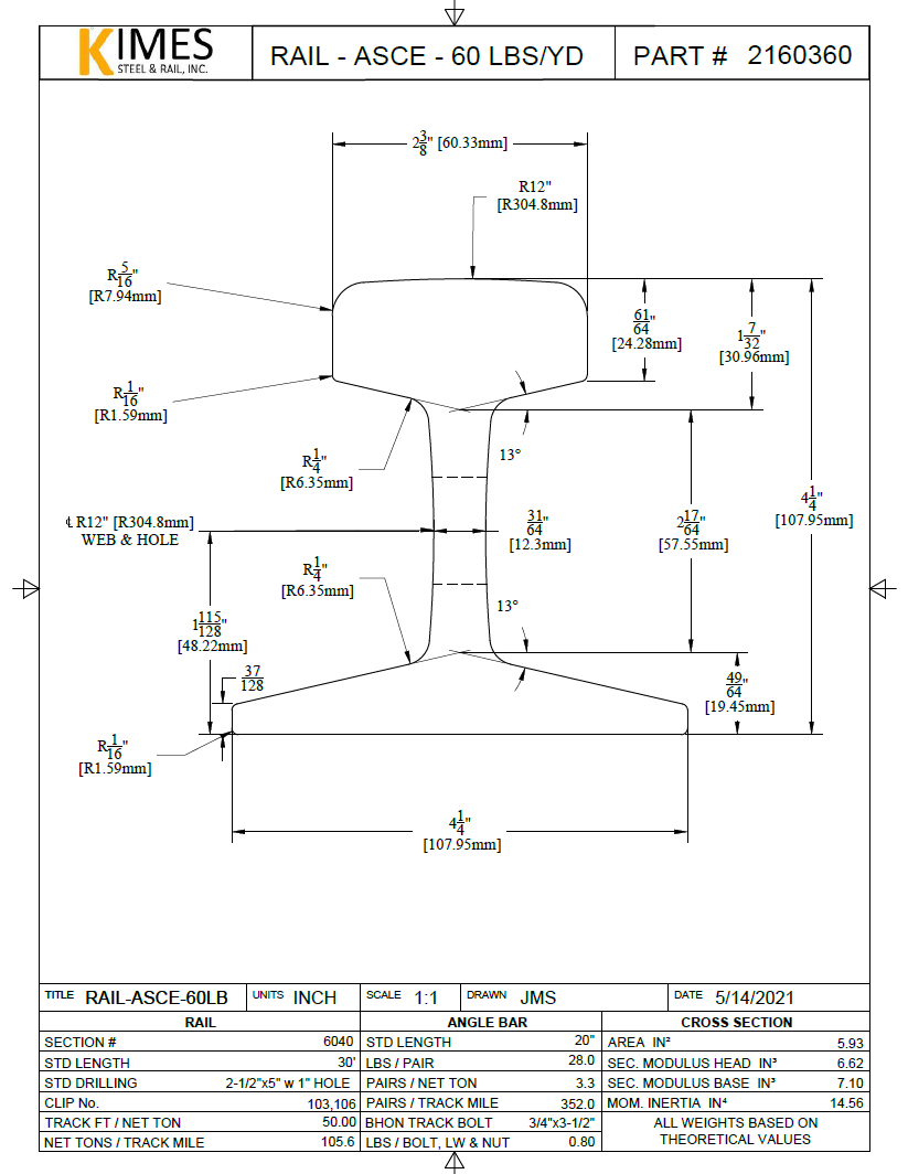 60 lb ASCE New Rail 40' Holes 2-1/2"x5" 800 lb/pc